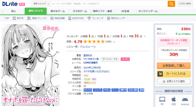 DLsiteは20年以上実績のある合法の電子書籍サイトです。